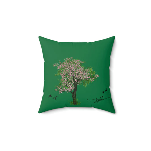 zyblu animal silhouette and cherry blossom Square Pillow dark green