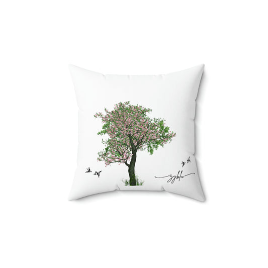 zyblu animal silhouette and cherry blossom Square Pillow white